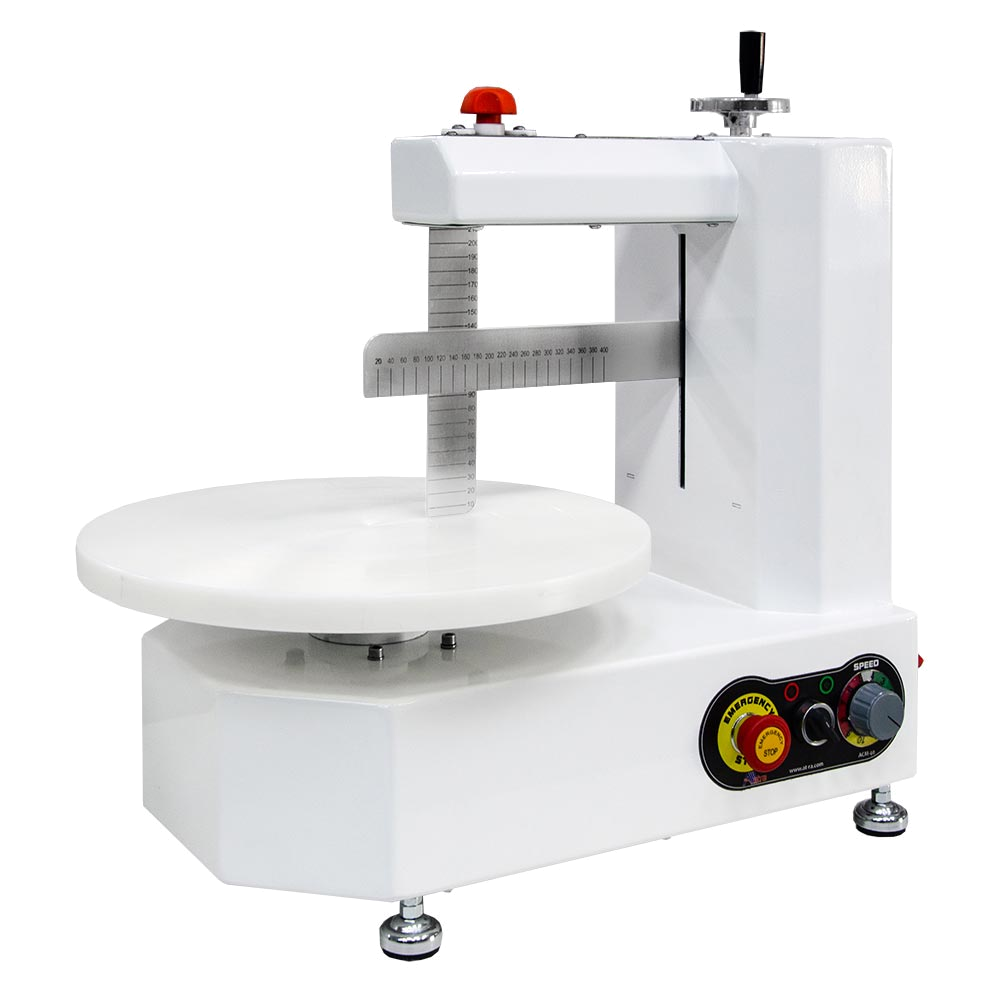 The Atra semi-automatic cake plastering machine ACM 40 is designed to speed up the cake decorating process and has been developed to meet the needs of pastry shops, cafés and home pastry chefs. The machine does not require constant level adjustment when changing the cake, making it convenient and user-friendly. Place the cake (or one of its cakes) in the middle of the machine’s working surface exactly in the center of the circle. Then switch on the machine and select the desired cake speed. This is how you regulate how thickly the cream is applied to the surface. The higher the speed is set, the more the cream will be absorbed into the cake. With this machine, you can adjust the height, thickness and density of the spread. The maximum allowable cake height does not exceed 170 mm and the diameter is 400 mm. The 220V connection, small size and weight of only 32kg allow it to be moved around the worktable and used as required. This machine works perfectly in combination with the ACP for optimal performance.
