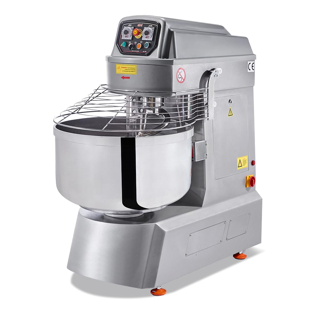 The spiral dough mixer Atra with a fixed bowl provides fast and efficient dough mixing, minimising flour and energy consumption. Our model is designed to save you time and energy, simply set the desired kneading time and the machine will run quieter than previous versions until the programme is complete. The control panel includes a variety of functions such as thermometer, speed control and timer, as well as an emergency stop button and auto shut-off system. The two-position motor allows you to adjust the speed for optimum dough kneading and all surfaces of the machine are made of food-safe materials, including hygienic stainless steel. The machine is easy to move around on wheels, and thanks to the new belt pulley system, it runs quieter, using a rubber belt instead of a metal chain.