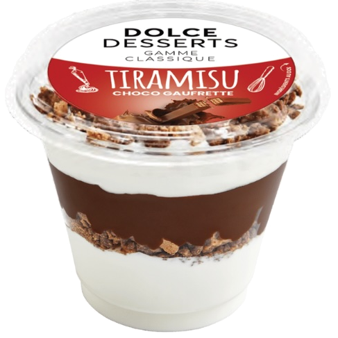 Immerse yourself in a classic tiramisu enriched with delicate particles of crispy wafer and delicate notes of milk chocolate. This exquisite dessert is the perfect combination of the delicacy of mascarpone, the velvety texture of chocolate and the crispness of wafer. Enjoy the harmony of textures and intensity of flavour as you indulge in the sweet delight of each unique bite.
